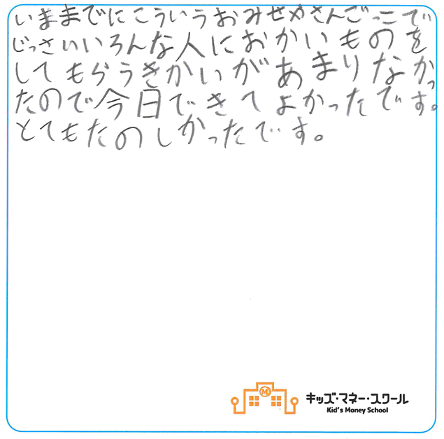 社会のしくみやお金について学んでいくことで様々な「ありがとう」という温かい気持ちをたくさん育てていってほしいと思います。